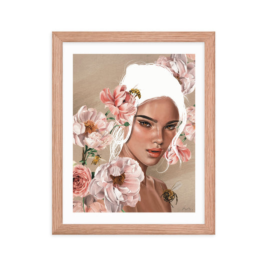 "Floral Bees" Art Print (Framed)